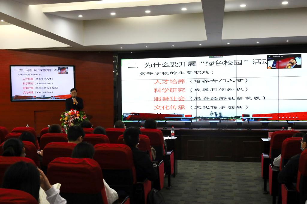 【本网讯】为弘扬生态文明,营造良好的教书育人环境,加强广大师生维护生态文明意识,建设绿色校园。11月11日下午,学校在三水校区举办了“弘扬生态文明,建设绿色校园”专题讲座,同时通过腾讯会议在花都校区分会场进行直播。本次讲座由工学院毋福海教授主讲。