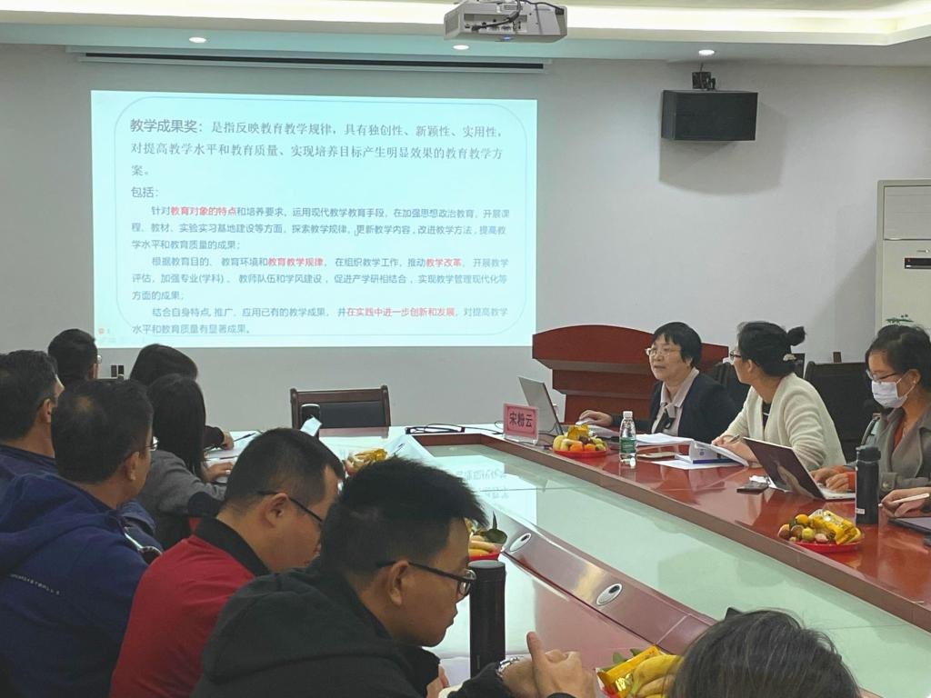 会上,宋教授以“浅谈高等教育教学成果奖申报”为主题,讲授了教育教学成果奖的培育和申报两个方面的内容,重点围绕理念引领、目标导向、顶层设计、厚积薄发四个方面阐释了教学成果奖申报理念、意义和实践经验,并以2018年国家级教学成果奖特等奖为案例进行了深入的阐述。最后,宋教授整理了申报思路,并从成果简介的写法、成果解决教学问题的方法、成果的创新点和成果的推广应用效果等四个方面具体阐述了申报书的撰写技巧。宋教授指出,申报书和总结报告要“精益求精”,题目要“耳目一新”,申报材料要“文字凝练、描述、图文并茂”,佐证材料要“全面、直观、可信”。