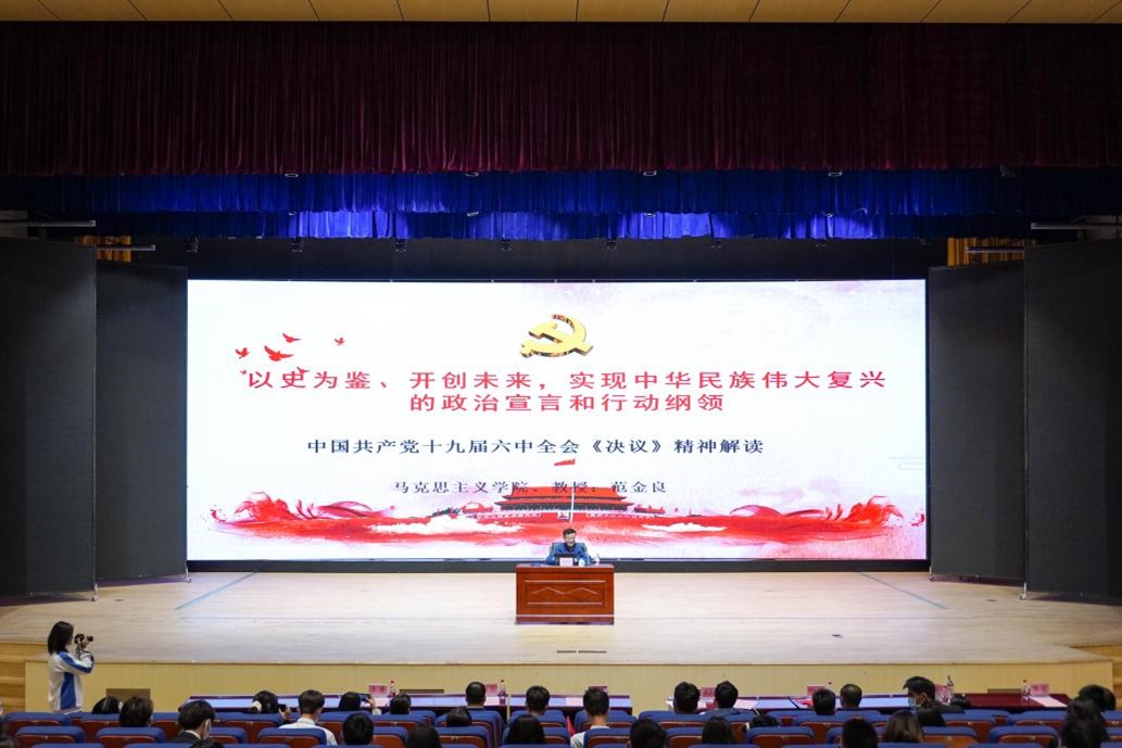 讲座伊始,范金良教授强调了学习《中共中央关于党的百年奋斗重大成就和历史经验的决议》(简称《决议》)精神的重大意义。党的十九届六中全会是在中国共产党成立100周年的重要历史时刻,在“两个一百年”奋斗目标历史交汇的关键节点上召开的一次具有里程碑意义的会议。会上通过的《决议》,是一篇闪耀着马克思主义真理光辉的纲领性文件,是新时代坚持和发展中国特色社会主义的政治宣言,也是实现中华民族伟大复兴的行动指南。