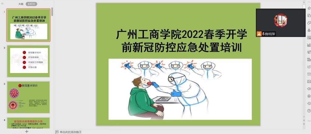 【本网讯】为落实《广州市各级各类学校2022年春季学期师生返校疫情防控工作方案》的文件精神,2月14日,学校开展2022春季开学前新冠防控应急处置线上视频培训,组织疫情防控工作人员进行疫情防控知识和技能教育培训。学校疫情防控工作小组全体人员、各二级学院辅导员、宿舍管理员参加。