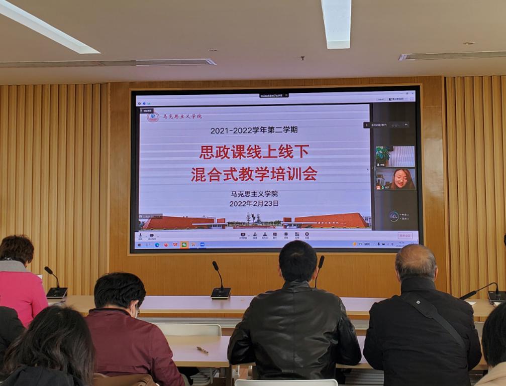 运用现代信息技术,提高思政课教学质量,是马院进行教学改革的一项重要措施。会议最后,由彭艺格老师为全体教师进行思政课线上线下混合式教学培训。她从线上平台建设的基本信息、线上线下混合式教学成绩权重、线上平台常用模块等方面,详细讲解和演示了如何利用“超星学习通”在电脑端和手机端进行授课和指导学生完成线上学习,并针对实操过程中可能出现的问题及注意事项进行了说明。