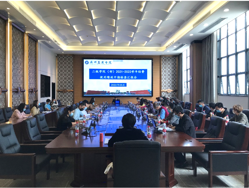 【本网讯】为落实本科教学合格评估工作整改要求,及时发现和解决经费使用过程存在的问题,切实提高经费的使用效益,3月31日,学校全面预算管理工作小组在花都校区召开二级学院(部)2021-2022学年经费使用绩效中期检查汇报会。学校财务总监黄金要、各经费主管单位负责人、二级学院(部)正职以及预算管理员、财务处经费投入小组成员参加会议。汇报会由董事会办公室主任陆志丹主持。