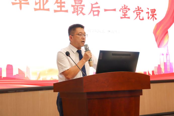 【本网讯】6月26日中午,商学院党总支在图书馆416报告厅召开毕业生党员离校前“最后一堂党课”。本次党课由商学院党总支书记、院长林波博士主讲,学院党总支常务副书记张娜同志主持。学院各专业老师、相关辅导员以及2022届毕业生党员和优秀毕业生参会。