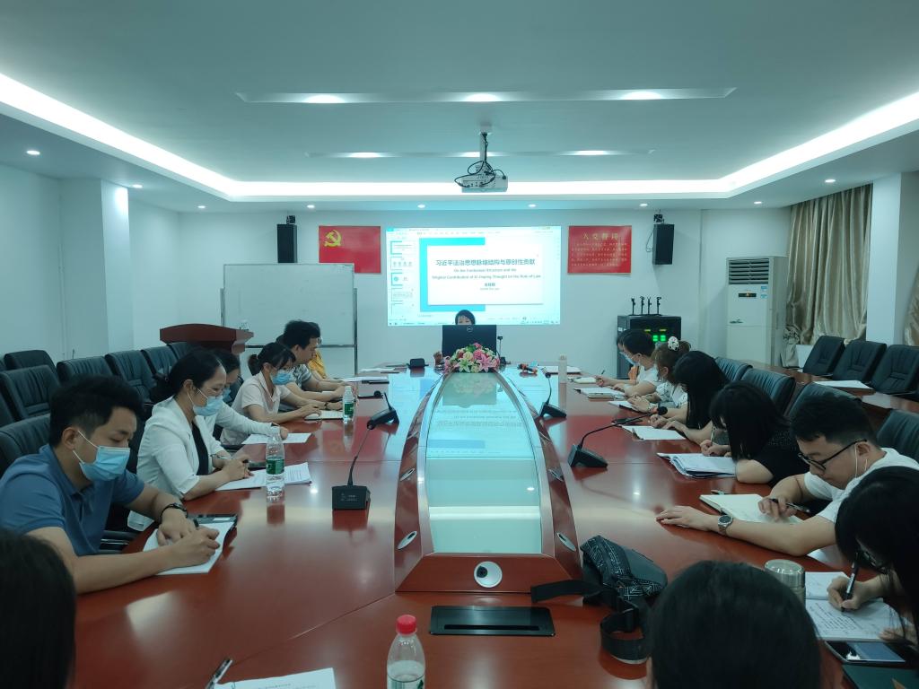 会上,全桂艳副书记从习近平法治思想形成脉络、习近平法治思想体系结构、习近平法治思想原创性贡献三个方面作领学报告。她指出,习近平法治思想的形成经过习近平总书记在河北、福建、浙江主政时期的实践起始,十八大、十九大的蓬勃发展、2020年11月召开的中央全面依法治国工作会议,确立了习近平法治思想在全面依法治国中的指导地位,思想形成三个阶段,为新时代马克思主义法治思想中国化和中华法治文明传承与发展作出卓越贡献。