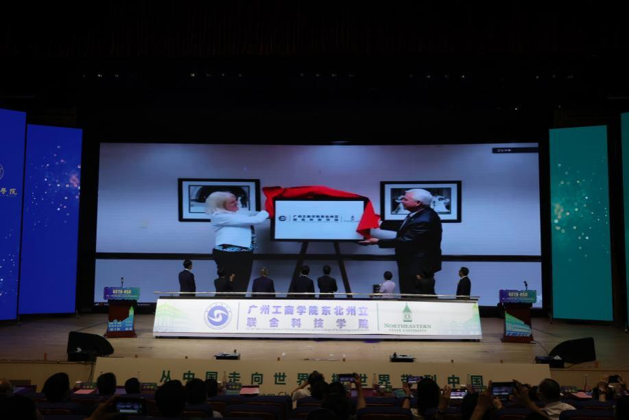 中国教育部驻美国使馆教育处公使衔参赞杨新育、广东省教育厅交流合作处(港澳台事务办公室)处长李金俊,美国东北州立大学校长Steve Turner、常务副校长Deborah Landry,华南农业大学广州都柏林国际生命科学与技术学院院长冯立新,beat365在线体育官网登录入口校长王日华、党委书记兼督导专员张振超等出席揭牌仪式。