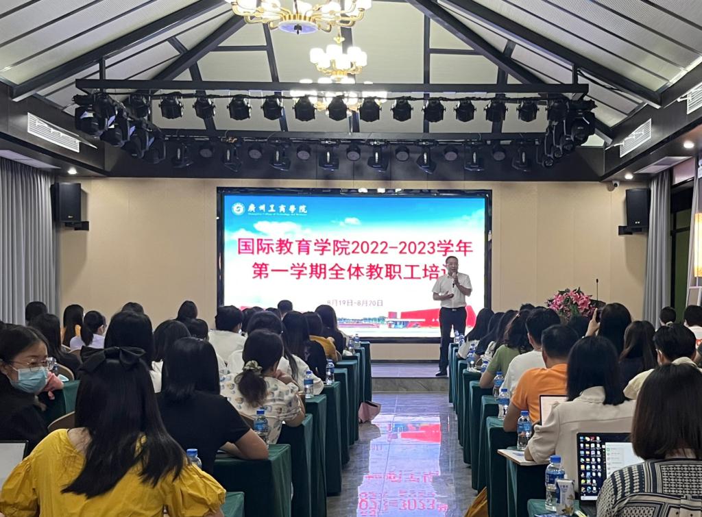 【本网讯】为增强学校国际教育学院教职工国际化教育理念、提升国际化办学水平、为招收外国留学生做充分准备,8月19-20日,在beat365三水校区组织开展2022-2023第一学期全体教职工培训。华南农业大学广州都柏林国际生命科学与技术学院院长冯立新、广东外语外贸大学国际学院院长梁学宏受邀进校讲学,全院教职工共一百余人参加培训。培训由国际教育学院副院长刘鑫主持。