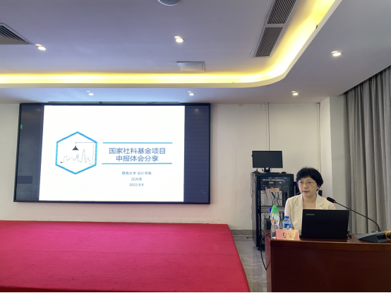 下午,沈洪涛教授以《国家社科基金项目申报体会分享》为主题,分享了会计课题的申报经验。沈教授围绕“摆正心态、重在选题、撰写初稿、反复修改、评审体会”五个环节展开分享。沈教授鼓励在座的老师,不管什么课题,都要积极申报,不申报永远为零,就算申报失败了,那也是宝贵的申报经验,撒过的泪水终会变成光亮。在讲授《碳会计的最新发展》时,沈教授通过逆向探讨,沈教授详细地阐述了“碳信息披露及其鉴证、碳‘关税’与产品碳成本、碳排放权交易会计处理”,并一针见血地指出了我国碳信息披露实践存在的问题。
