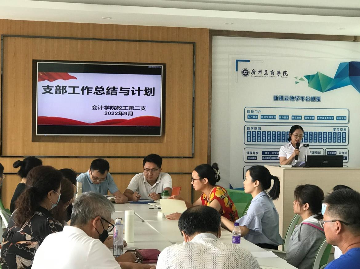 【本网讯】为深入贯彻落实习近平新时代中国特色社会主义思想和党的十九大精神,扎实有效地开展党建工作,提升教工支部的组织能力和党员的先锋模范作用,9月15日,会计学院教工第二党支部召开党建工作总结及计划会议,会议由组织委员利雅同志主持,教工二支部全体党员和教师代表参加了会议。