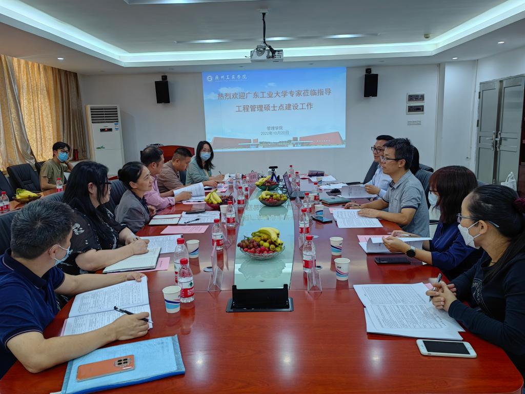 【本网讯】10月20日,管理学院特邀广东工业大学王志红教授、冯为民教授两位专家前来对我院工程管理硕士点建设工作进行指导。会议由管理学院院长乔鹏亮主持,副院长邹剑峰、梁春树,工程管理硕士点建设小组全体成员参加了会议。