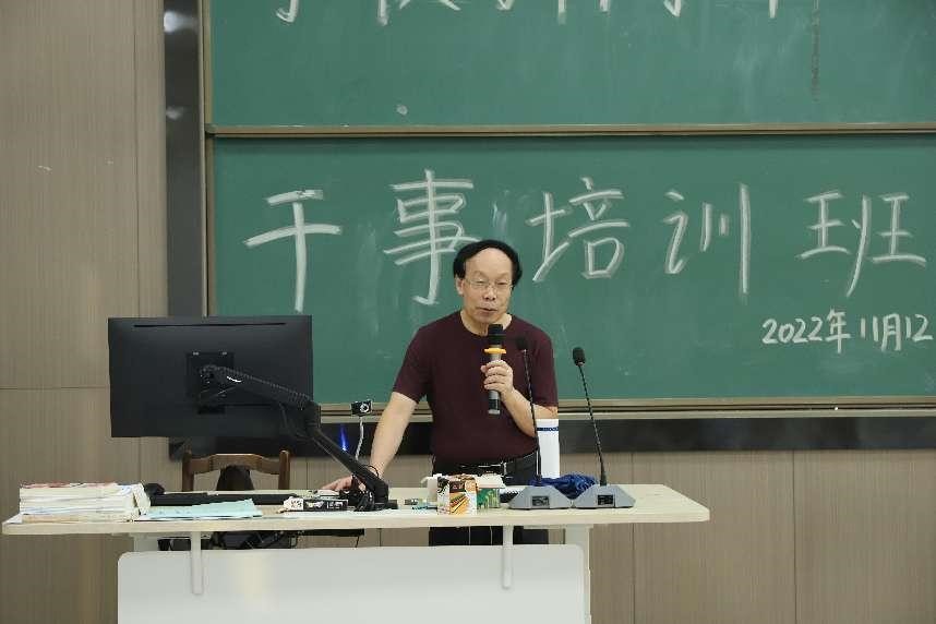 宣传部负责学校官微运营的朱建朋老师讲授摄影摄像的知识和技巧。朱老师具体讲解了影响照片的三要素、摄影的基础构图、校园新闻照片的要求,介绍了照相机的种类、镜头、光圈、快门、滤光镜和附件等功能。
