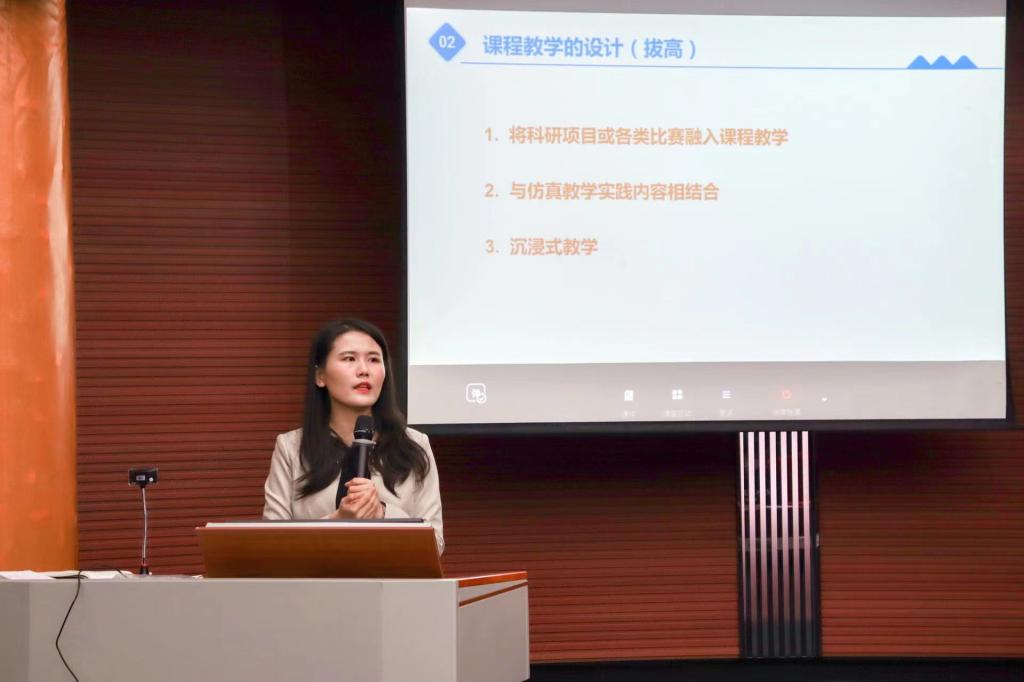 【本网讯】为加强教师之间的教学交流,促进广大教师更新教育理念、掌握现代化教学方法手段、锤炼教学基本功,11月11日下午,我院组织“2022年广东省第六届高校(本科)青年教师教学大赛”二等奖获得者王一琳老师在教学楼701学术报告厅就《互联网金融》课程教学进行了公开示范。此次活动由张晓英副院长主持,线上线下同步开展,共有一百余名师生参加。