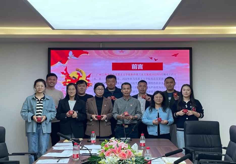 马院党总支宣传委员谭丽婷同志为支部党员颁发党徽