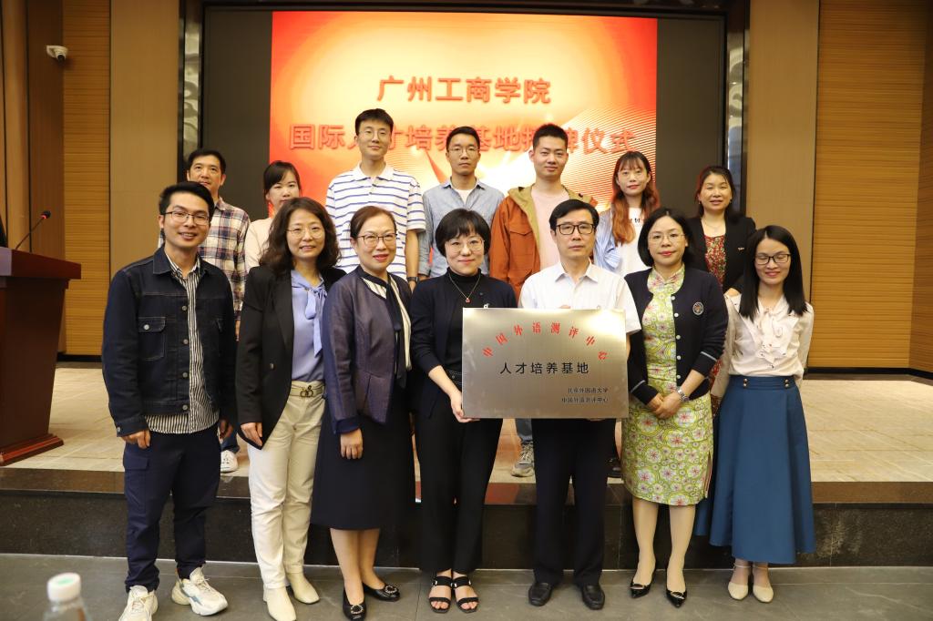 【本网讯】3月20日,北京外国语大学中国外语测评中心国际人才培养基地授牌仪式暨优秀考生颁奖典礼在beat365花都校区举行。外语教学与研究出版社外研教育测评中心总经理助理、研发部主任胡淼,外语教学与研究出版社孙雪梅,外语学院院长刘沛富教授、副院长王天枝、商务英语教研室主任胡燕、商务英语教研室副主任牛雪剑、外语学院11名优秀教师代表以及来自不同年级的100名学生参加。刘沛富、胡淼为基地授牌,并为2022下半年考季国才优秀考生颁发奖学金证书。