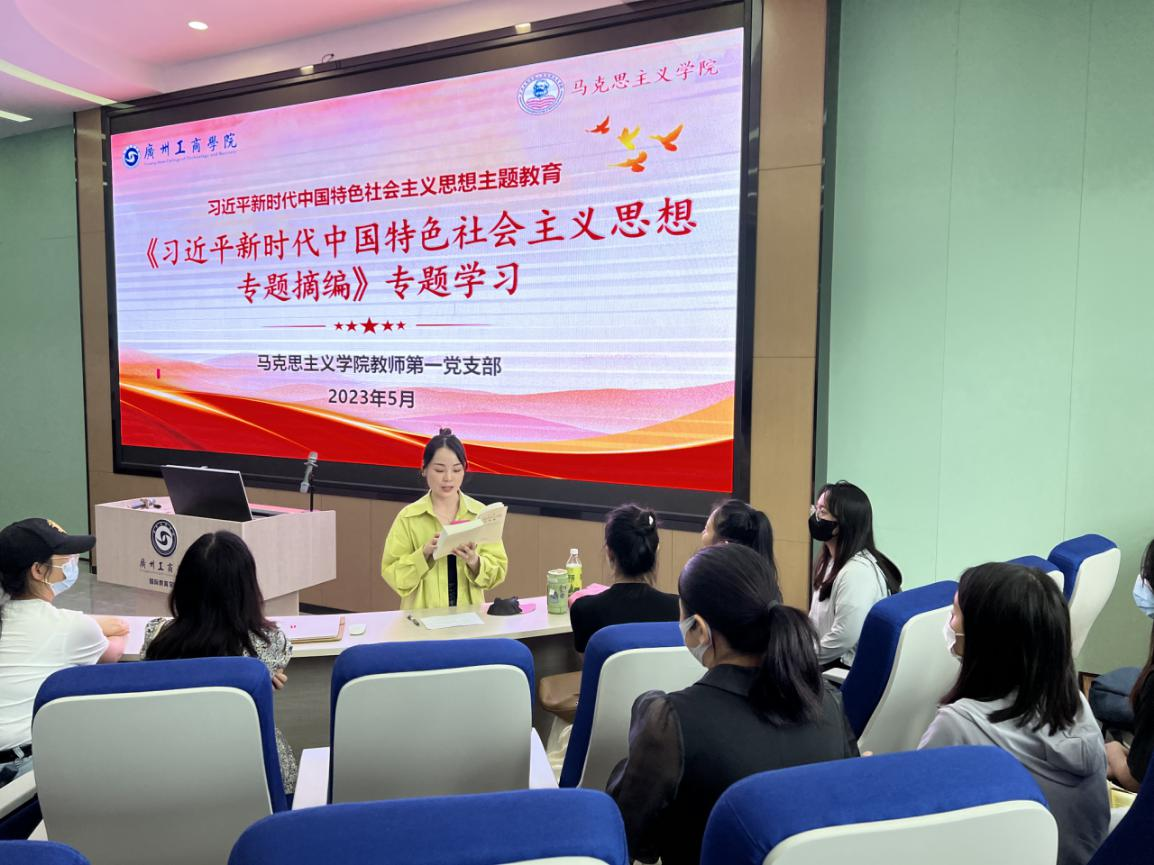 【本网讯】为深入学习贯彻习近平新时代中国特色社会主义思想主题教育,紧紧围绕“学思想、强党性、重实践、建新功”的总要求,要求党员领导干部和全体党员把学习教育贯穿始终,不断深化理论学习和实践探索,确保主题教育在马克思主义学院开好局、起好步。5月23日下午,马克思主义学院教师第一党支部在三水校区开展集中学习研讨会,深入学习贯彻习近平新时代中国特色社会主义思想主题教育。教师第一党支部宣传委员张晓老师主持,教师第一党支部全体党员同志参加。