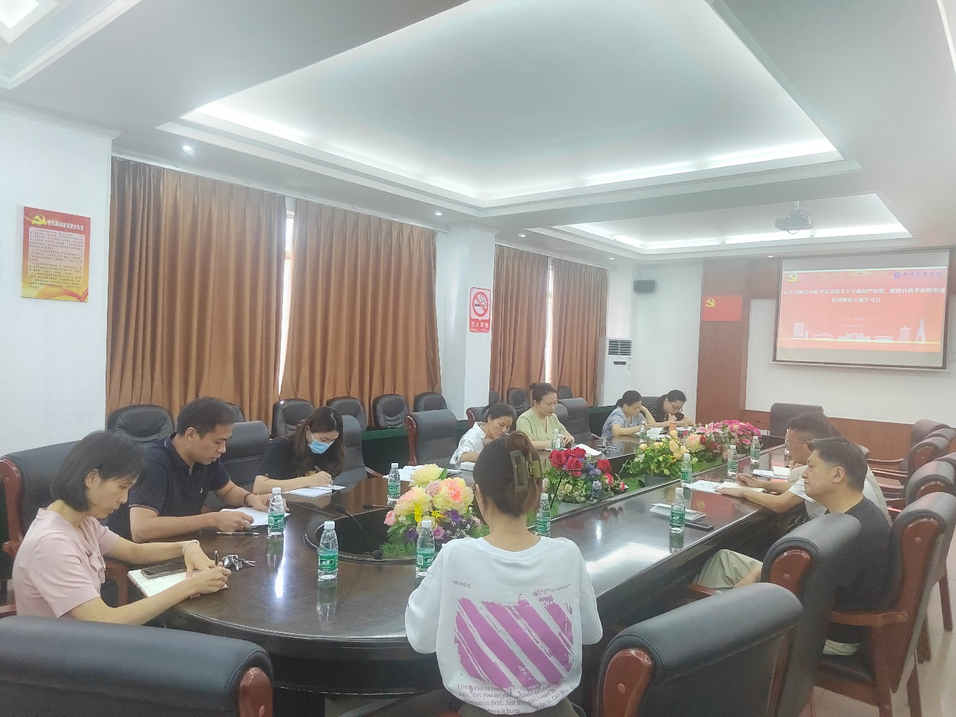 【本网讯】6月15日,下午机关一支部在花都校区召开关于开展学习贯彻习近平新时代中国特色社会主义思想主题教育读书班专题辅导会,由党委委员、副校长朱特威同志作《深入学习领会习近平总书记关于全面从严治党、推进自我革命的重要论述》学习报告。