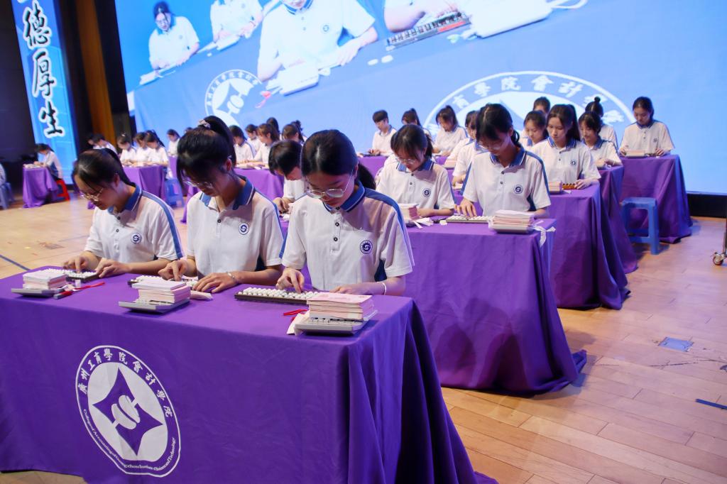 活动中,高玉莲副教授与会计学院学生代表带来会计技能节目表演。噼里啪啦的算盘敲击声、指尖不断划过每一张钞票的点钞声响彻整个会场。