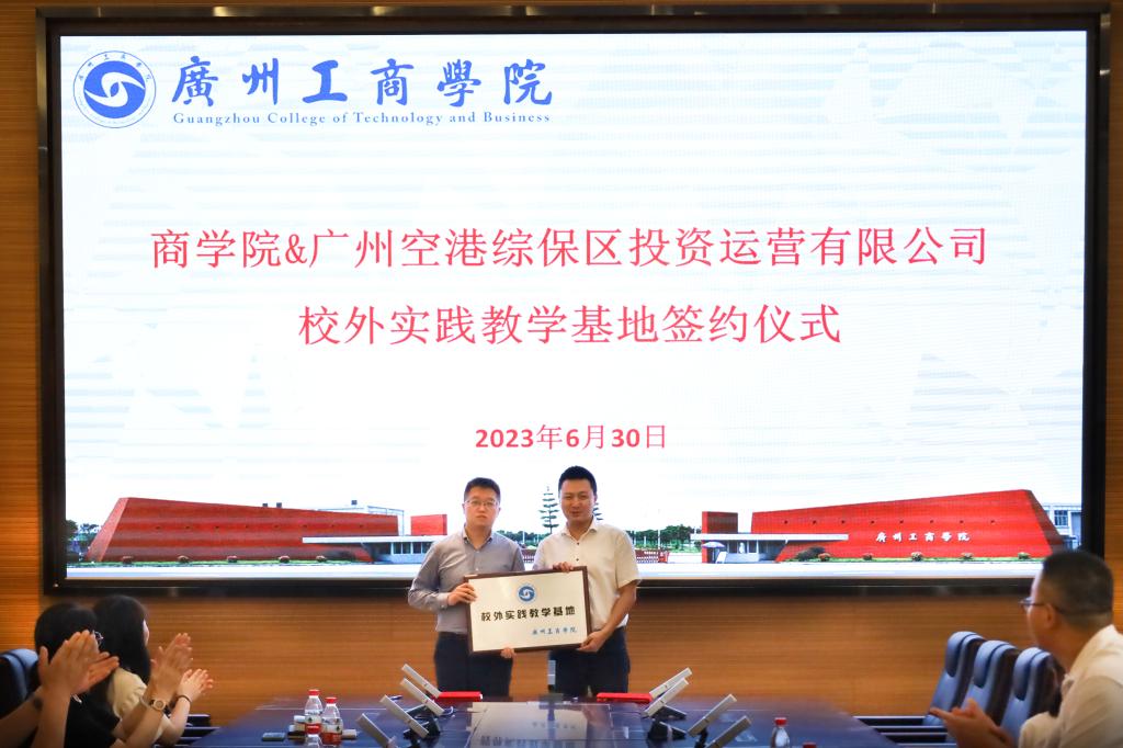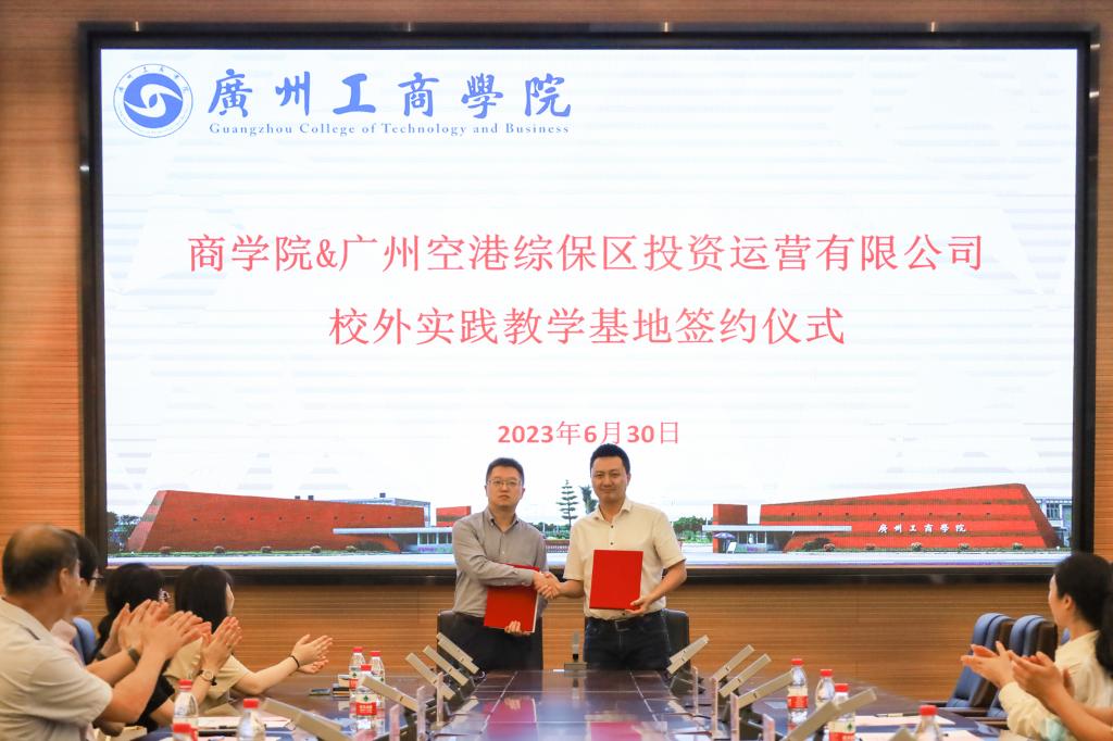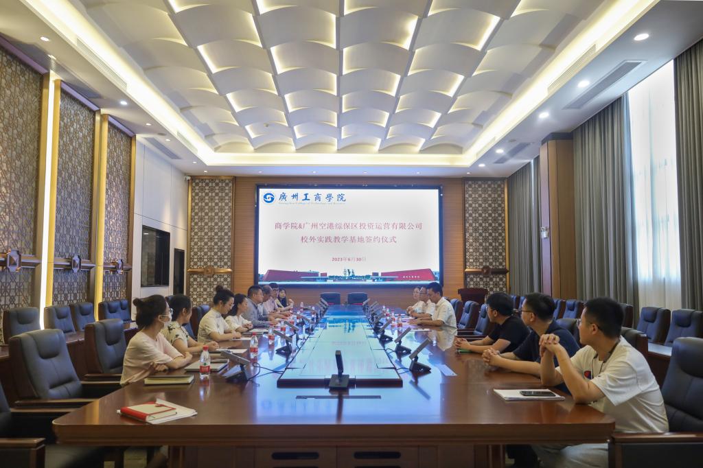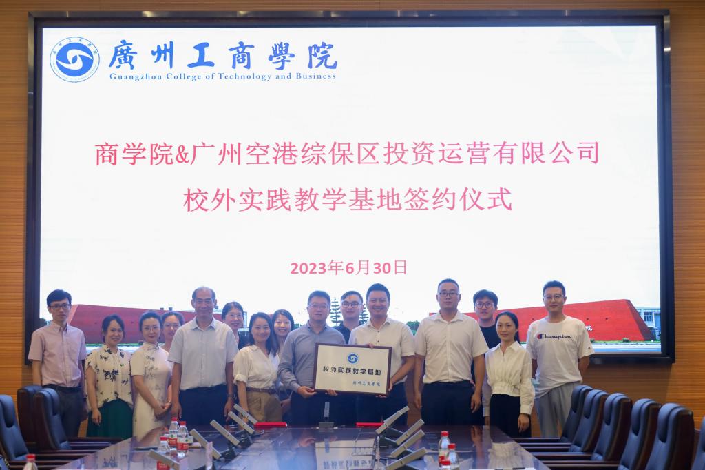 【本网讯】为深化产教融合,创新人才培养模式,拓宽学生实习和就业渠道, 6月30日,商学院与广州空港综保区投资运营有限公司实践教学基地签约仪式在花都校区举行。商学院院长林波、副院长张娜、院长助理关建波博士、国际经济与贸易专业负责人李勤昌教授、孙水鹅博士,国际经济与贸易教研室主任潘银坪以及广州空港综保区投资运营有限公司马俊总经理一行四人参加签约仪式。签约仪式由副院长张娜主持。