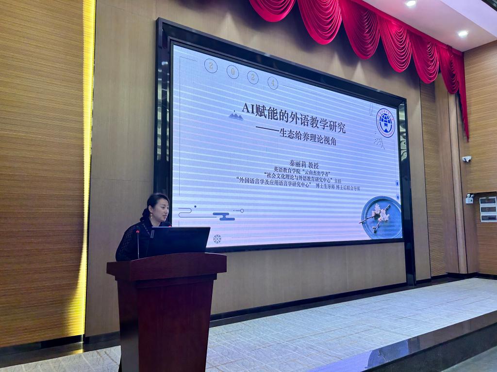 秦丽莉教授首先简洁明了地介绍了“教育数字化”的背景,并强调了数字化教育在当代的重要性。随后,她深入探讨了二语习得领域中的“生态给养”研究,阐述了该研究的范式与方法,并揭示了语言学习与“生态给养”之间的紧密联系。通过引用几个关键的二语课堂“生态给养”实证研究案例,她将复杂的学术概念阐释得通俗易懂。最终,秦教授利用研究案例,详细阐述了在“生态给养”视角下,人工智能如何赋能外语教学这一前沿研究领域,以及该领域的重要研究成果。