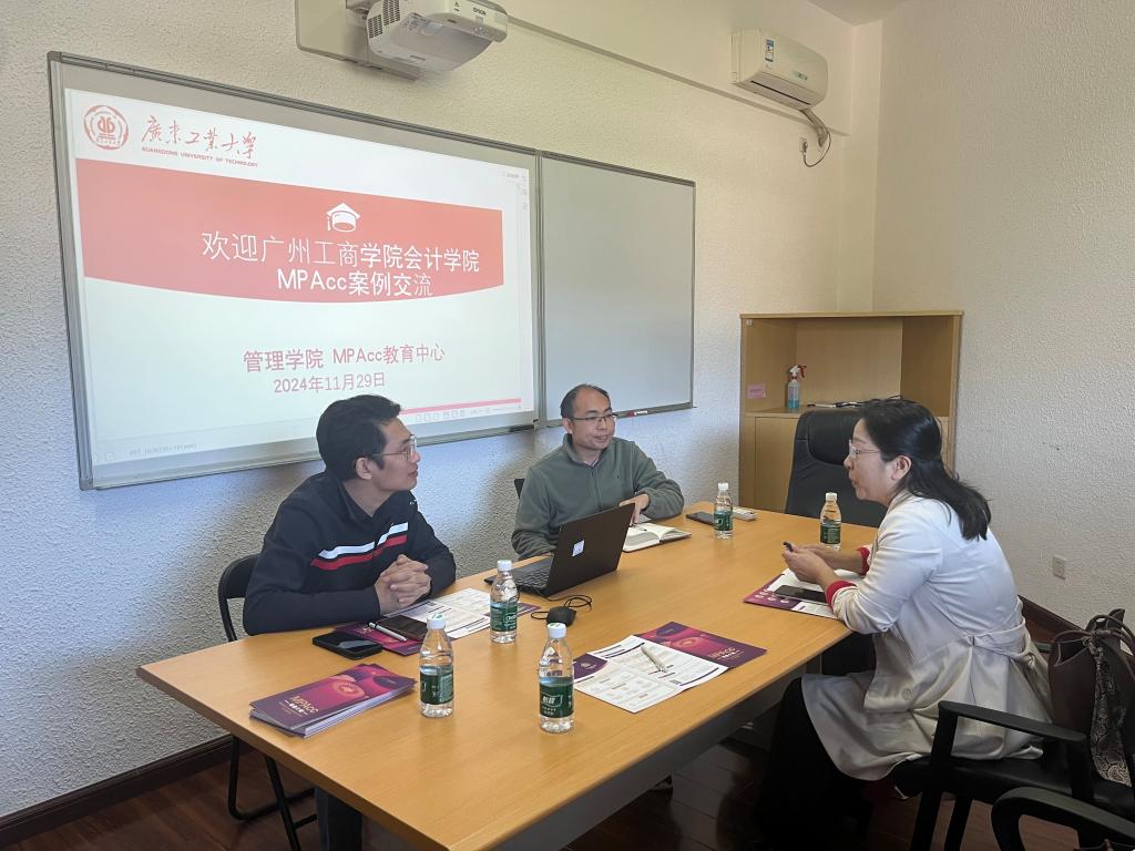 【本网讯】11月29日,为助力硕士学位点申报,会计学院院长任道纹教授和副院长高少慧博士一同前往合作院校广东工业大学参加MPAcc案例交流会,与广东工业大学MPAcc教育中心主任许慧博士和副主任彭镇博士,共同围绕案例相关重要议题展开了深入且富有成效的探讨。