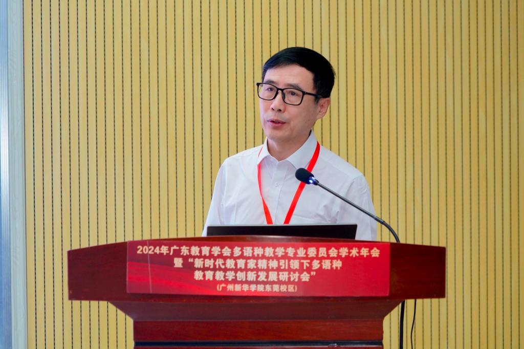 【本网讯】12月7日,2024年广东教育学会多语种教学专业委员会学术年会暨“新时代教育家精神引领下多语种教育教学创新发展研讨会”在广州新华学院东莞校区举行。