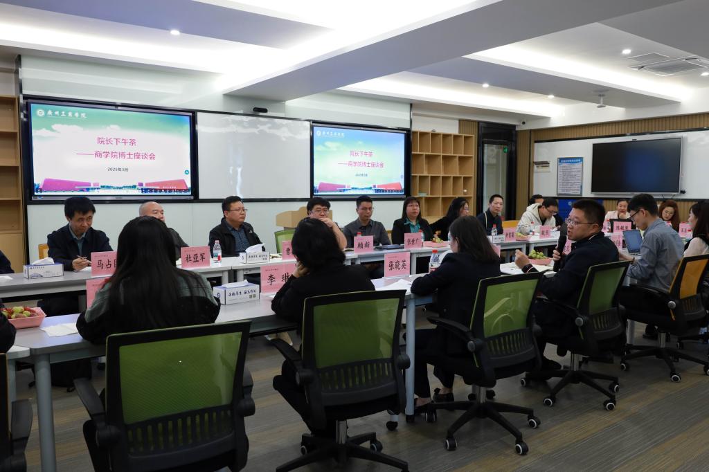 【本网讯】为搭建学院与博士间的沟通桥梁,深化教学科研领域的深度合作。3月20日下午,商学院在花都校区举办“院长下午茶——博士发展战略研讨会”。学院领导班子、教研室主任及来自不同学科的博士围绕教学创新、学科交叉融合、科研成果转化等核心议题展开深度研讨,共谋商学院高质量发展新路径。