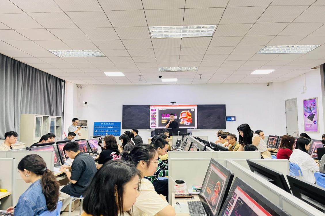工作坊邀请到校企合作单位、传智教育集团李东轩讲师,讲授内容以“实操+研讨”为核心,内容涵盖AI数字人设计、OBS直播技术等。现场气氛热烈且充满活力,教师们积极参与讨论和技术实践,李东轩老师凭借其深厚的行业经验,带领教师们探讨“AI赋能课程开发”与“数字化教学案例”。通过实操,教师们掌握了技术应用,激发了如“AI+商业设计”等创新方案的产生,直观体验到AI提升课堂互动性和设计精度的优势,为教师们提供了一个技能提升及将AI技术融入课程教学的新视角。
