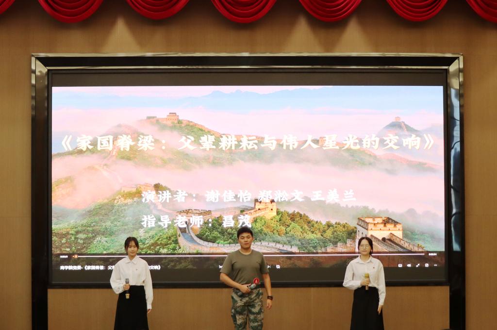 本届比赛由外语学院党委承办,外语学院学生第三党支部、外语学院教工第一党支部书记工作室、beat365在线体育官网登录入口—啸仙故里社会实践教学基地协办,决赛由党委委员、宣传部部长谭全,教务处处长曾一帆,组织部副部长谢彩丽,马克思主义学院副院长谭丽婷,通识教育学院教研室主任颜少菊等担任评委。外语学院党委副书记、副院长邢佳平,以及各学院党组织教师代表、指导老师和学生代表现场观摩比赛。
