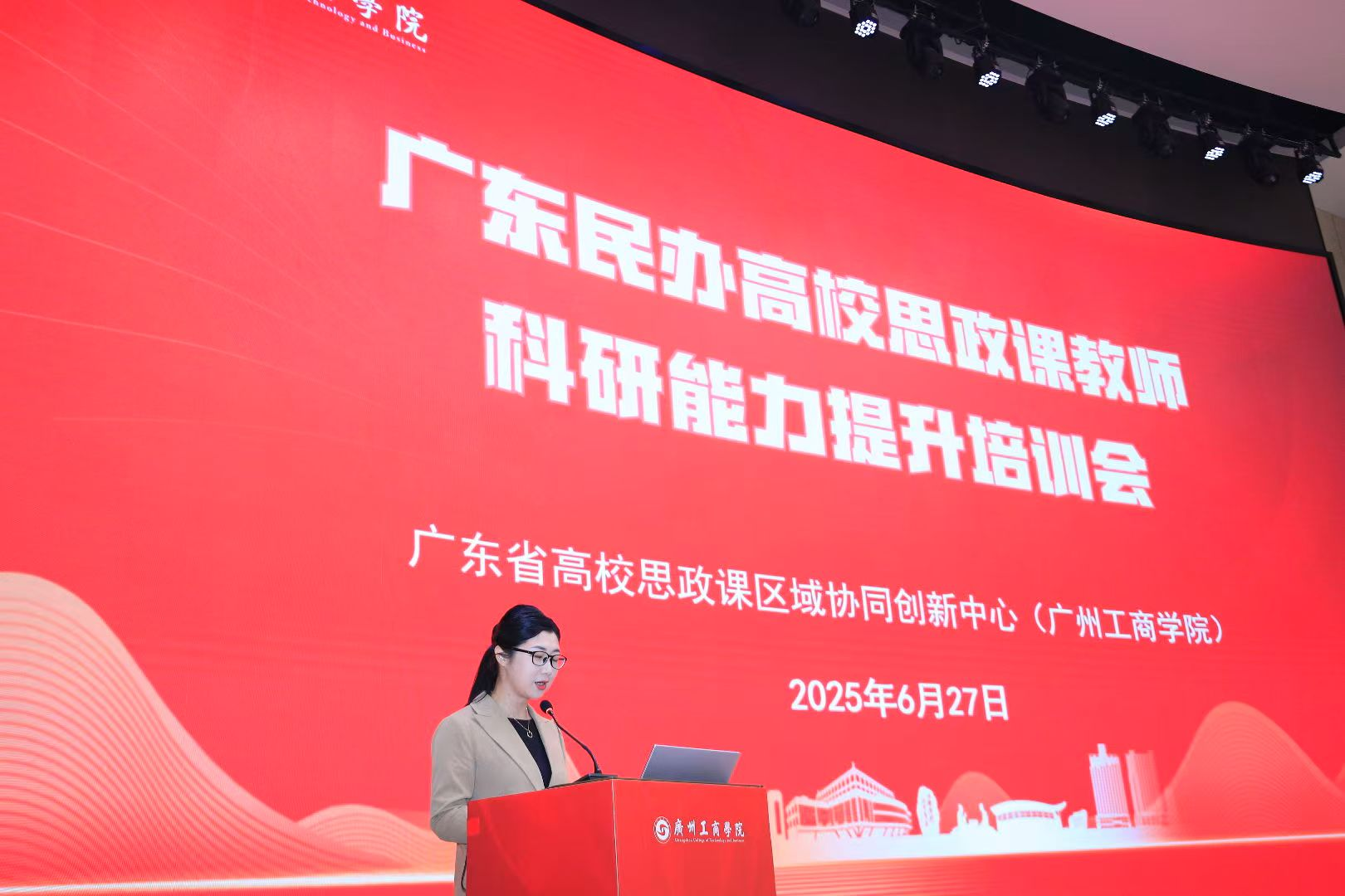 【本网讯】为深入学习贯彻党的二十届三中全会和全国教育大会精神,加强广东省民办高校思政课教师队伍教学科研能力整体提升,6月27日上午,广东省高校思政课区域协同创新中心(beat365在线体育官网登录入口)在beat365在线体育官网登录入口广州校区举办思政课教师科研能力提升培训会。会议由中心主任助理,beat365在线体育官网登录入口马克思主义学院党总支副书记、副院长谭丽婷副教授主持,中心协同的14所民办高校以及省内其他25所民办高校马克思主义学院负责人及骨干教师代表、广东省高校党建研究会民办院校分会广州市(白云、花都区)区域协作组代表180余人参会。