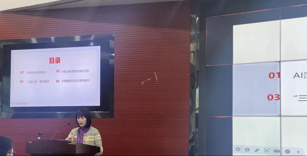 汕头大学商学院龙月娥教授以“AI赋能教育教学——‘三段六化’模式的探索与实践”为题,提出“人机协同、流程再造”的教学新范式。她指出,AI不是替代教师,而是重塑教学分工。教师应成为“学习体验设计师”,通过AI工具实现精准备课、互动授课与个性辅导,从而将教学重心转向思维启发与能力建构,实现“规模化教育”与“个性化培养”的统一。
