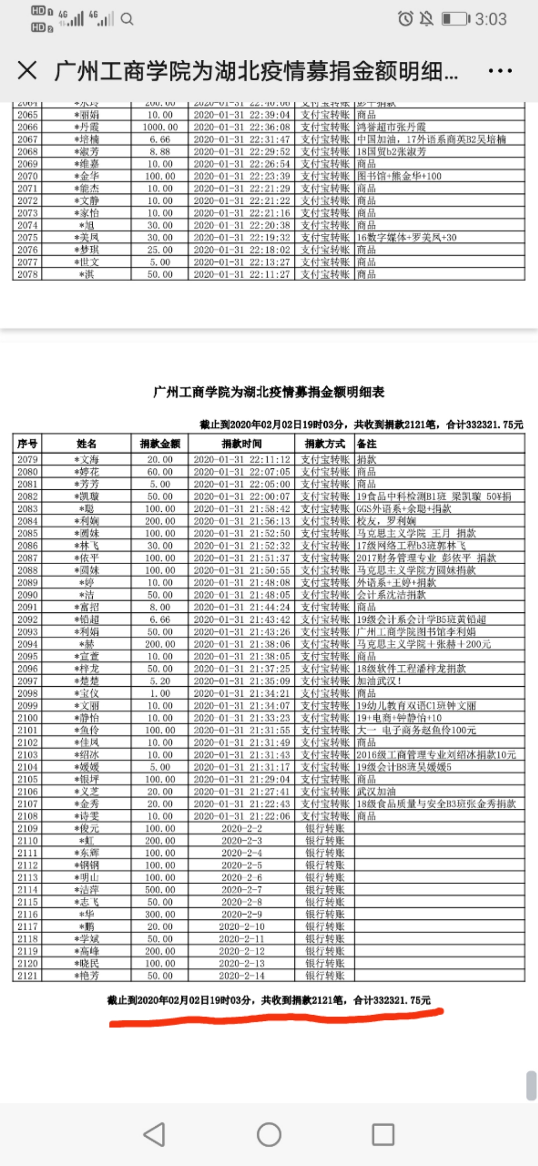 自2020年1月30日22:00学院在官微发出推文后,学院师生员工主动转发,至当晚24:00推文阅读量达5285人,有101个班级群里转发了此消息,同时很多老师纷纷在各类群及各自朋友圈转发,呼吁更多朋友献上一份爱心,24小时募捐27万+,见证广工商的速度与温度,当下,倡议书阅读人数达1.3万+,共有近200个班级在群中转发倡议书,捐款笔数逾2121笔,超33万人民币。