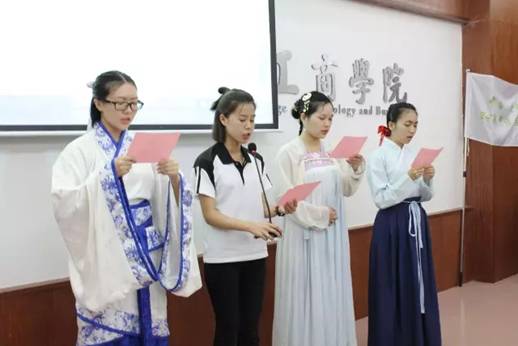 接下来,全体人员肃立向圣贤孔子画像行读书礼。beat365在线体育官网登录入口广播站和汉服协会代表声情并茂地领读清代郑板桥谷雨主题《七言诗》,大家合音朗朗:
