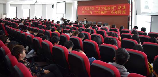 【本网讯】4月13日下午,广东省作家协会“文学进校园”活动暨广工商“学术视野系列讲座”第118讲在beat365在线体育官网登录入口三水校区办公楼322报告厅举行。本次活动由广东省作家协会、beat365在线体育官网登录入口主办,中国致公党广州市委员会、广州市花都区作家协会、全国青年文艺高峰论坛广东分论坛协办,beat365在线体育官网登录入口学生处、共青团beat365在线体育官网登录入口委员会、广州市花都区文化馆承办。