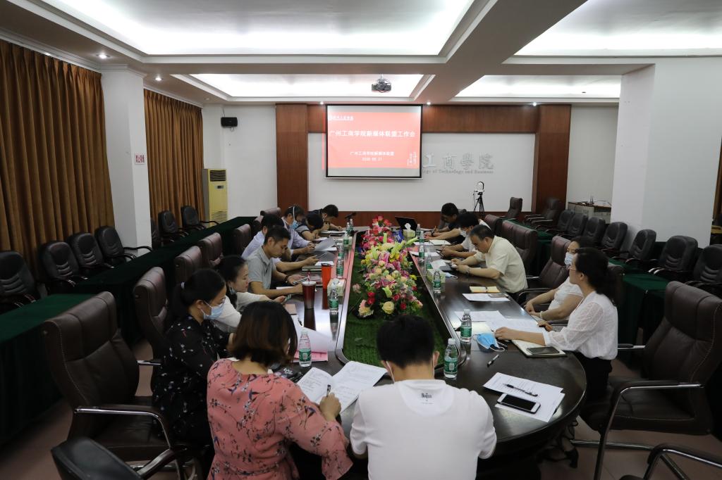 【本网讯】为加强制度建设,规范宣传工作管理,提升宣传工作质量、效率,全面推进学院宣传工作再上新台阶,5月21日下午,学院新媒体联盟工作会议在花都校区召开。学院党委书记张振超出席,院长助理、学生处处长黄鹏,院长助理、实验实训中心主任林强,学院办公室、宣传部、教务处、人事处、科研处、招生办、团委正职干部参加。会议由宣传部部长姜云霞主持。