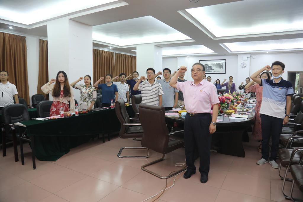 座谈会最后,张书记带领全体党员一起重温了入党誓词,党员们高举右拳齐声宣誓,以此献礼党的生日,表达不忘初心、砥砺奋进的信念和决心。(党办)