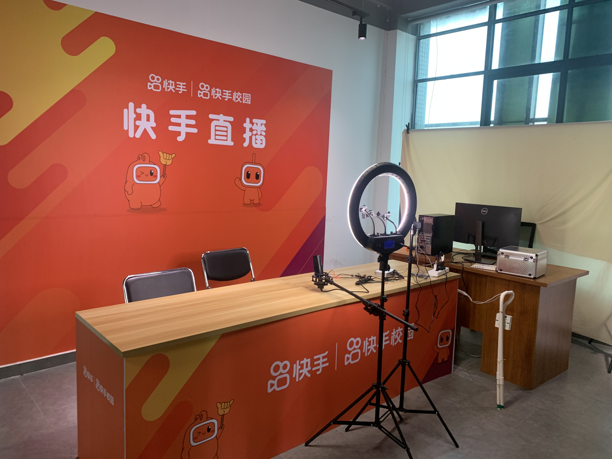 “广工商-新知时代短视频直播基地”快手直播间。佛山日报记者苏宏堃摄影