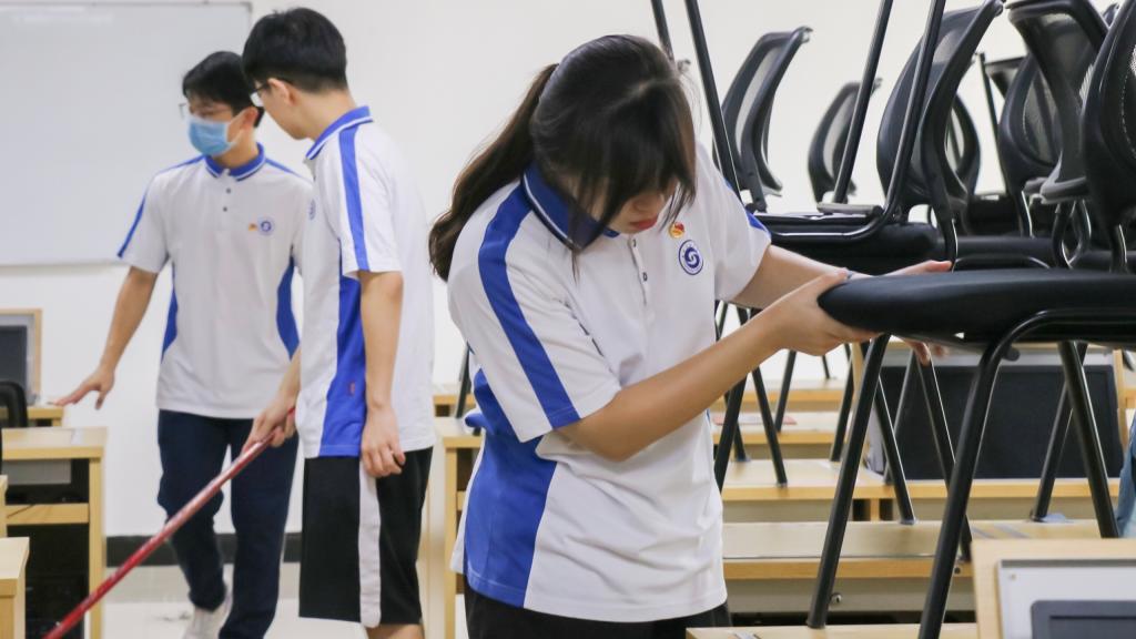 在党支部组织下,全体成员对国教楼各课室楼道的卫生打扫和国际公寓周边单车摆放、杂草和杂物进行打扫清洁工作。活动过程中同学们听从指挥、井然有序、同心协力让国教楼和宿舍公寓焕然一新。活动结束后,全体成员在国际楼一楼大厅合影留念。