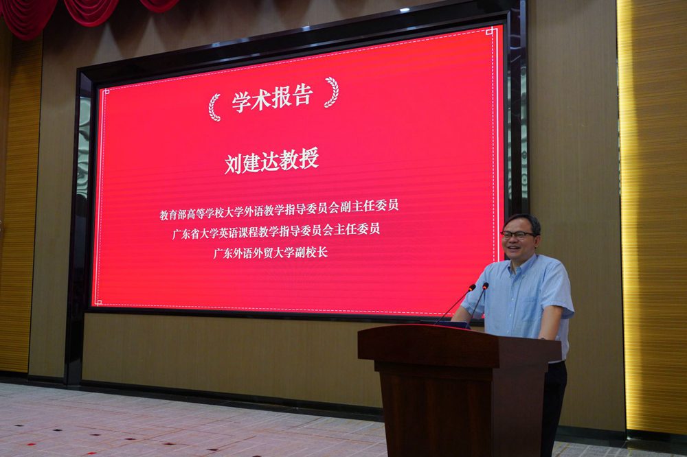 广东省本科高校大学英语教学指导委员会主任委员刘建达教授,广东省本科高校外语类专业教学指导委员会副主任委员、英语专业分委员会主任委员张欣教授,广东省本科高校大学英语课程教学指导委员会副主任委员陈晓茹教授,广东省本科高校外语类专业教学指导委员会英语专业分委员会委员徐玲教授分别致辞并做学术报告。