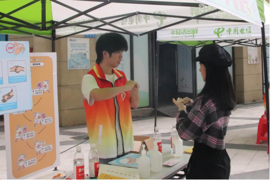 在花都区花港社区,志愿者们通过发放《全民卫生防控意识,健康洗手科普手册》,生动讲解“七步洗手法”,有力地宣传了洗手健康的知识。活动共设立了10个摊位宣传点,包括洗手健康、垃圾分类、防诈骗等知识宣传。志愿者们通过设置“洗手知多D”“小垃圾找房子”“法网恢恢疏而不漏”等趣味十足的摊位名称,吸引社区居民前来参加活动。活动现场,志愿者们通过洗手科普小游戏,志愿者们跟社区居民进行洗手知识问答,使当地居民对于如何正确、规范地控制细菌不传播。