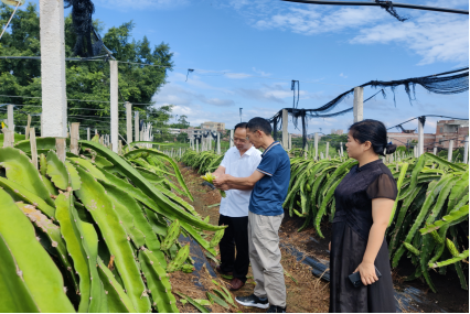 省农技协专家陈伟副教授、谢鹏博士、黄兴文与林希昊老师一起在田间地头了解火龙果生长情况