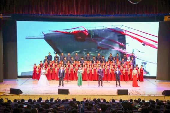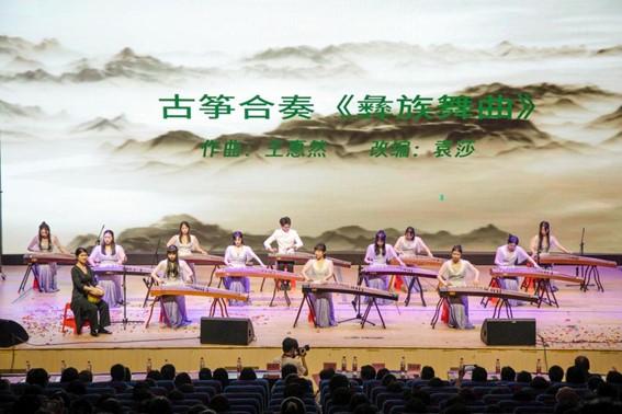 除了舞蹈表演,音乐会亦有器乐演奏、声乐演唱等多种形式。曲目汇聚古今,贯通时空,融合多民族艺术形式,节目构思精致、意义非凡。如古筝合奏《彝族舞曲》以抒情流畅的旋律和奔放热烈的节奏,欢快活泼的风格加之打击乐的配合,令作品在鼓点的点缀下层次分明,彝族人民的热情与淳朴浮现眼前。男声合唱选择了三首战争革命歌曲:《太行山上》《弹起我心爱的土琵琶》《游击队之歌》。12位声乐专业学生西装革履、容光焕发,在新时代唱响昔日“战歌”,依旧热血澎湃、情绪激昂。