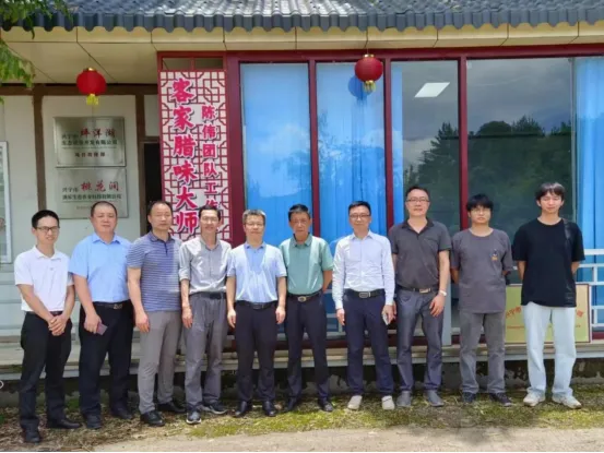 最后,调研组走进广东坪洋湖生态农业发展有限公司和客家腊味科研院(广东)产业科技有限公司等企业调研,并参观了设在企业的客家腊味大师陈伟团队工作室,和大坪镇领导、村干部们就人才需求进行了友好的交流,就下一步校企合作产学研打造大学生实习就业基地与如何为兴宁培养应用型本科经营管理类人才进行讨论。