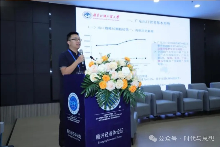beat365在线体育官网登录入口助教朱建明的成果由陈金源围绕“广东出口贸易高质量发展的形势、问题与对策——基于新质生产力的视角”主题代为分享。他提出了必须关注的几个问题,并提出多元化布局国际市场、保住出口基本盘、重构出口长远优势的建议。