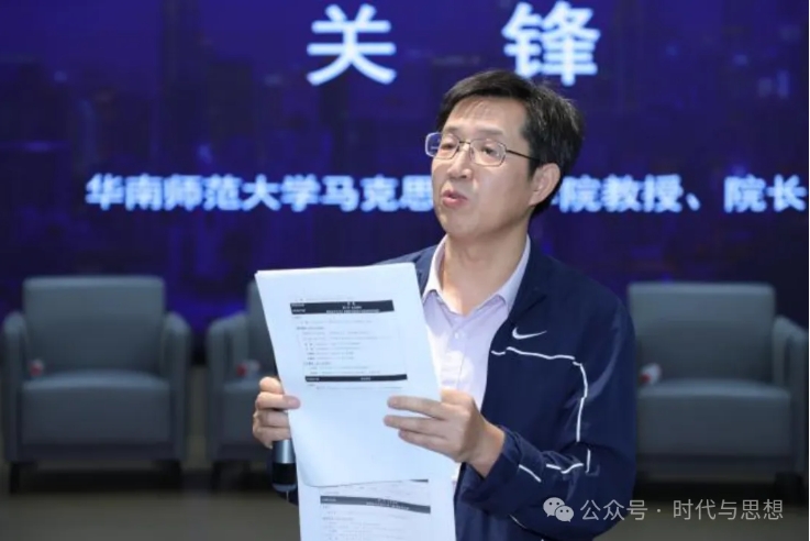 第二节主旨演讲的主题为“新质生产力与广东海外利益安全风险防范和保护”,由华南师范大学马克思主义学院教授、院长,广东社会主义社会辩证法研究会副会长关锋主持。他强调,广东作为改革开放的排头兵、先行地、实验区,要通过发展新质生产力,通过科技创新,通过构建卓有成效的安全风险防范机制,在探索中国式现代化中走在前列。