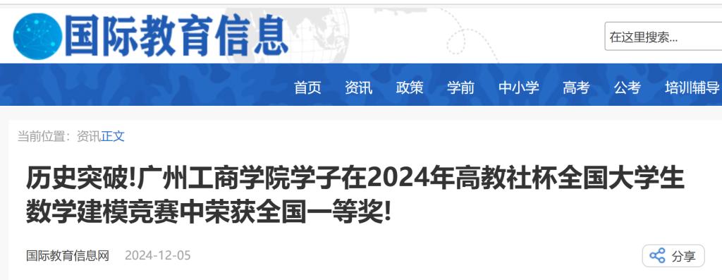 近日,2024年高教社杯全国大学生数学建模竞赛获奖名单公布。学校通识教育学院郭祺、谢小军、付苗苗、闫湛、薛申芳、魏玉华、龙彩燕、骆旗、贾利琴、张琼、吴梓斌老师等数学建模教师团队积极带领学生参赛,经过激烈比拼,广工商参赛队伍获得国家级一等奖1项、省一等奖2项、省二等奖1项、省三等奖3项、省优胜奖10项。其中郭祺老师指导的队伍获得全国一等奖的优异成绩,取得了历史性突破。在国家一等奖获奖队伍中,广东省的共有26个,其中来自民办高校的只有两所院校,beat365在线体育官网登录入口是其中之一。