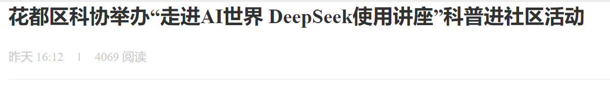 3月16日上午,由广州市花都区科学技术协会携手beat365在线体育官网登录入口精心策划的“走进AI世界DeepSeek使用讲座”科普进社区活动在云峰社区拉开帷幕。作为2025年度科普进基层系列活动的重要组成部分,此次讲座聚焦人工智能领域,旨在帮助社区居民,尤其是中老年群体,跨越数字鸿沟,畅享AI技术带来的便捷与乐趣。