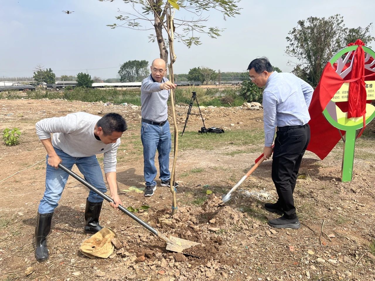 3月11日,芦苞镇四联村委会人大小组在欧边小学开展了一场植树活动。各位人大代表积极响应号召,带头践行绿色发展理念。