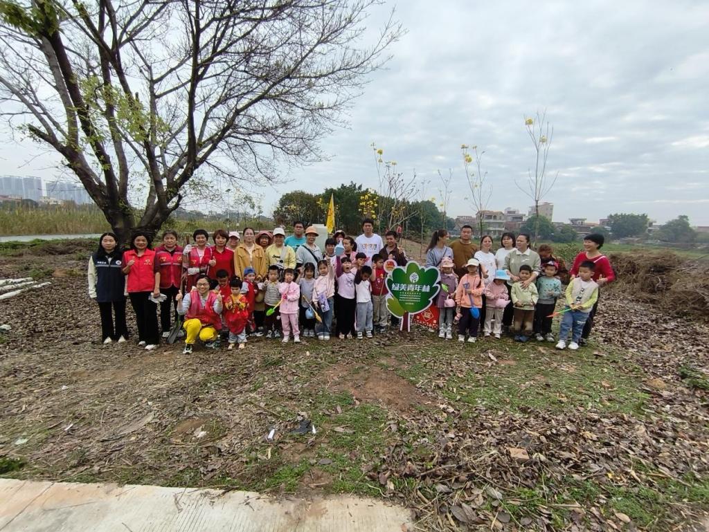 与此同时,在独树岗上垅地,另一场植树活动也在如火如荼地进行。芦苞瑞芳幼儿园的20对亲子家庭,在村委会工作人员的带领下,与社会志愿者们一同挥汗如雨,共同种下80棵寓意着希望与未来的大叶紫薇和桂花树苗。孩子们在父母的陪伴下,亲手触摸泥土,感受生命的成长,这一刻,亲子间的温情与对自然的敬畏完美融合。