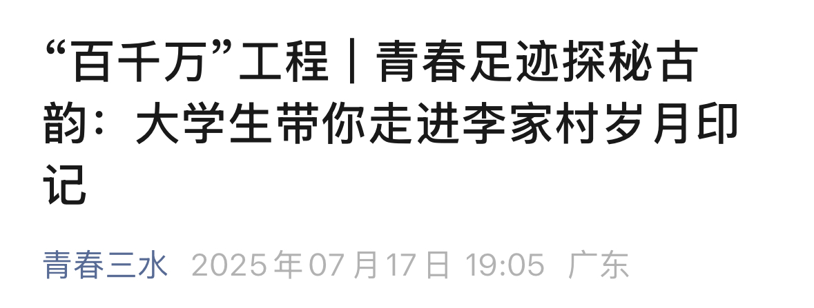 7月12日,beat365在线体育官网登录入口青穗梦之队突击队的成员们走进李家村,在这片承载着岁月痕迹的土地上,开展历史解说活动。队员们漫步于青砖黛瓦的古村间,以生动的讲述,还原李家村沉淀百年的历史故事。