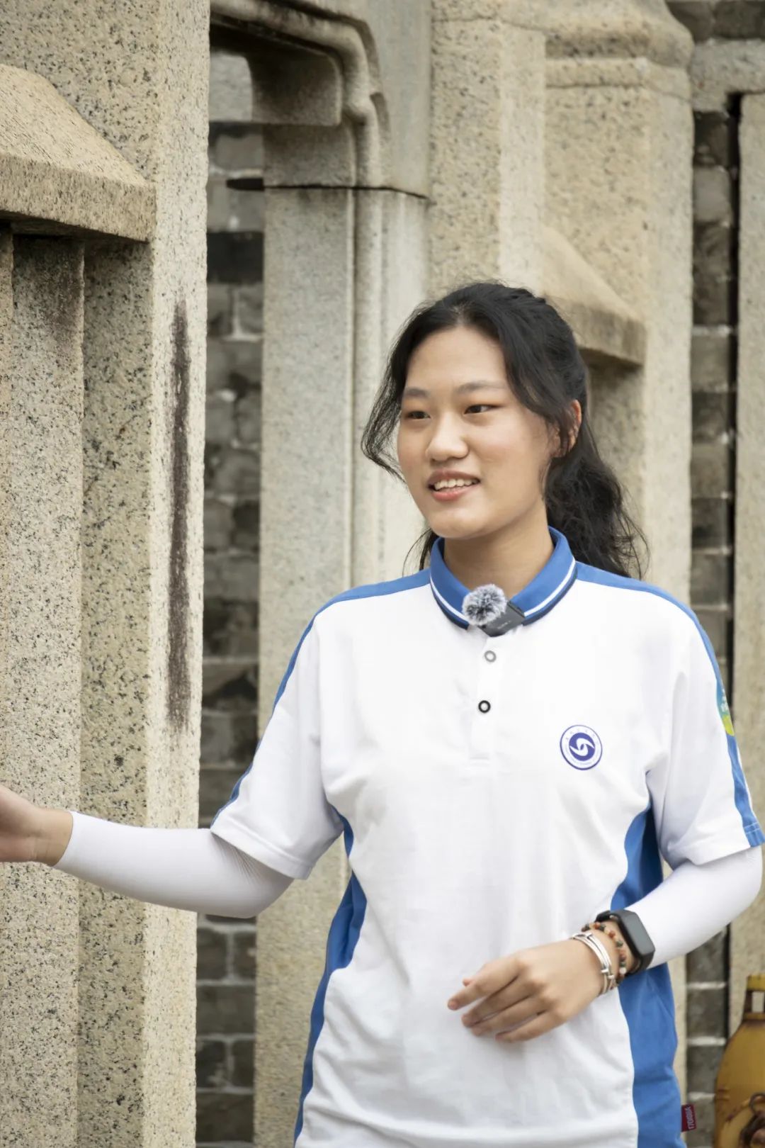 厚重的青砖墙爬满青苔,错落间透着古朴韵味。讲解员朱玉春轻轻抚过墙面,指尖触碰着岁月在砖石上留下的斑驳印记。