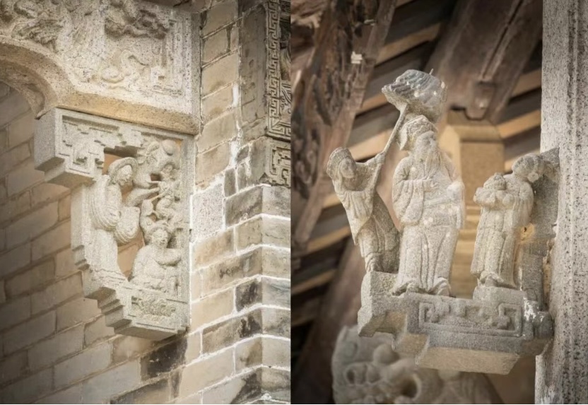 同样地,秀茂李公祠内的灰塑、彩绘,绘有山水人物,搭配清代楹联“登龙传世系,翔凤化舆图”,让祭祀与议事的场景更添几分文化温度。而如山李公祠则藏着一段姓氏传奇——朱姓以水塘换姓为李的往事,为其蒙上了一层神秘色彩。虽内部已显残破,但石木砖瓦间的雕刻,仍见证着开族太公“如山”的开拓历程。